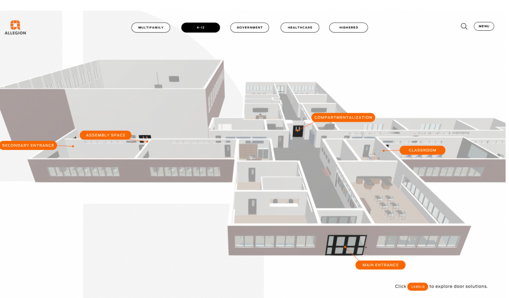 Allegion in Action is an interactive, WebGL-based Unity experience designed to showcase suites of Allegion security products in realistic, scenario-based environments.